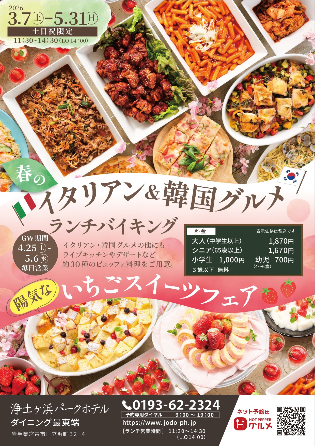 【土日祝】3月7日~5月31日の期間限定『春のイタリアン&韓国グルメ』と『いちごスイーツフェア』開催...